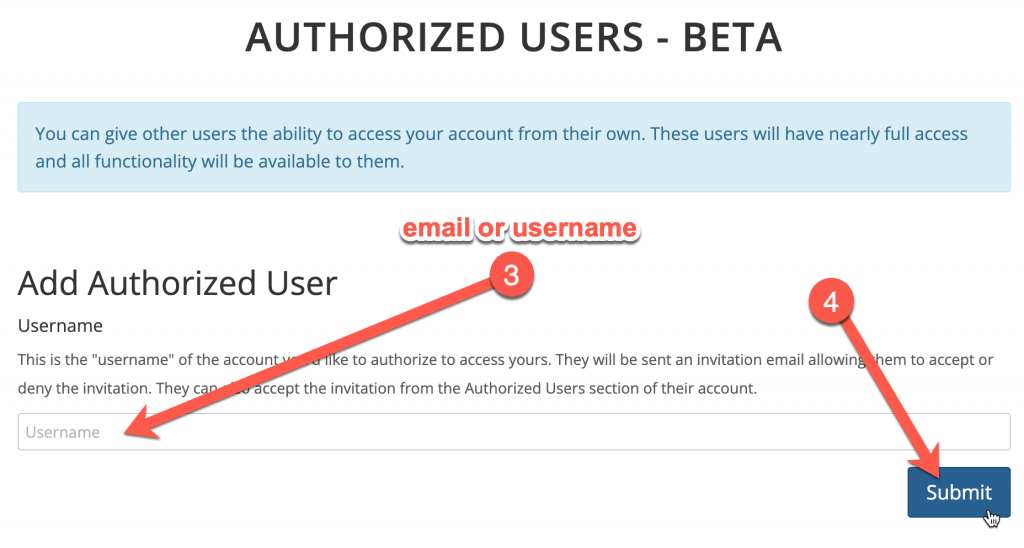 Next, scroll down a little, and (3) enter the username or email address of whoever you want to share your Porkbun account with.