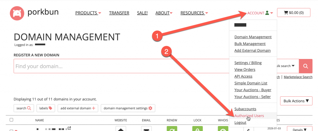 After you’ve registered your domain at Porkbun, you may want to share access to your domains with whoever is working on your website. This guide will help you invite them.